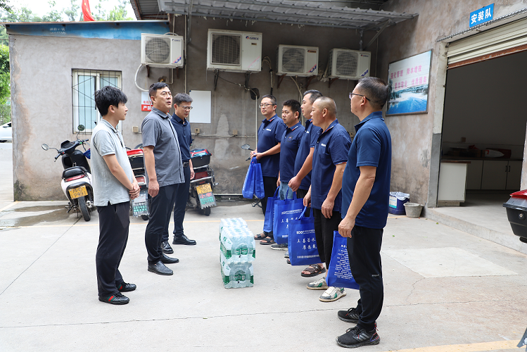 支部書記、執(zhí)行董事龔慶一行深入公司廠區(qū)、安裝維修隊及客戶服務(wù)中心,為一線職工送去了藿香正氣液、板藍(lán)根、風(fēng)油精、葡萄糖口服液、礦泉水等防暑降溫物資,與職工們親切交談,詳細(xì)詢問他們的工作和生活情況。同時囑咐大家要注意勞逸結(jié)合,合理安排工作時間,做好防暑降溫措施,并強(qiáng)調(diào)當(dāng)前正值汛期,生產(chǎn)廠區(qū)要做好防汛措施,加強(qiáng)雷電天氣設(shè)施設(shè)備安全檢查,確保正常運(yùn)行。